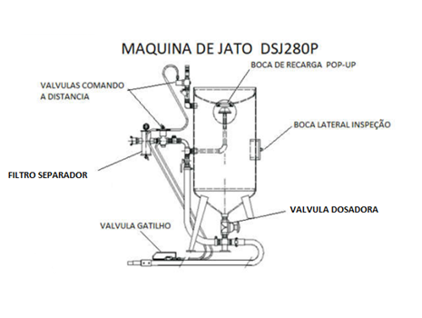 *Fundo cônico, proporcionando melhor aproveitamento do abrasivo e qualidade no fluxo do material